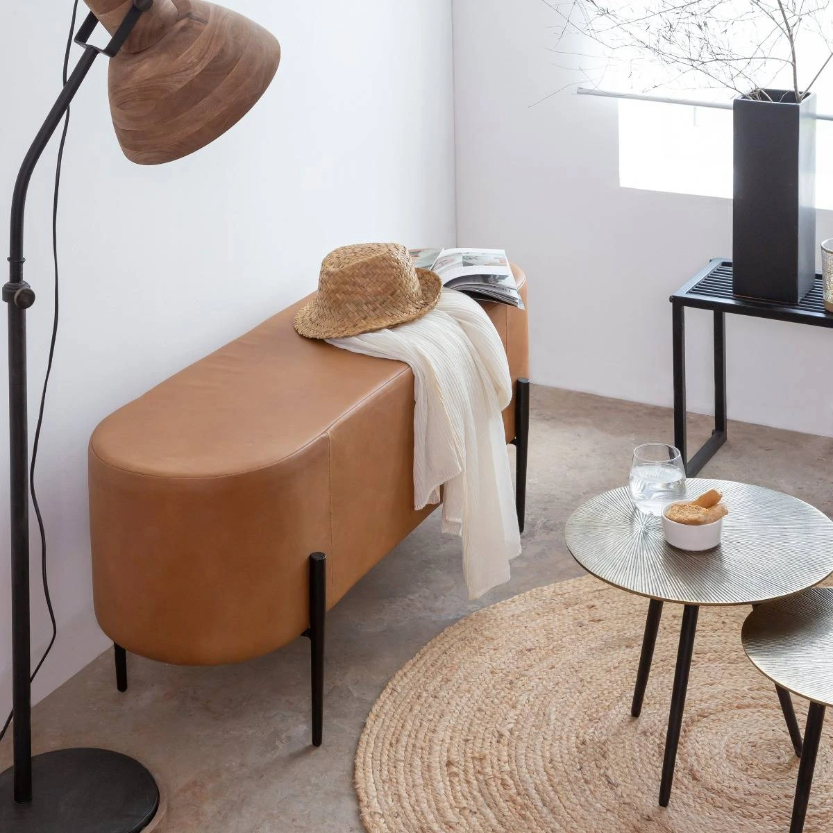 La magnifique assise en cuir marron est luxueusement douce et confortable, tandis que les solides pieds en métal noir assurent une parfaite stabilité. Avec une hauteur de 48 cm et une largeur de 120 cm, c’est la taille parfaite pour un espace de vie. Cette charmante banquette en cuir marron et métal est un moyen facile de rehausser n’importe quelle pièce.