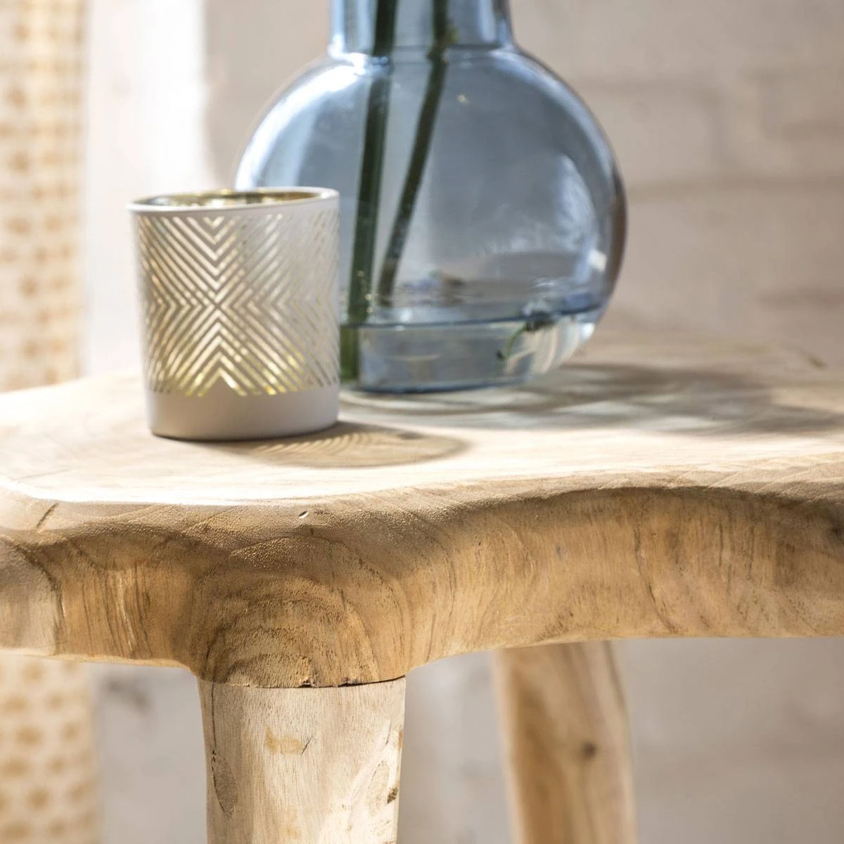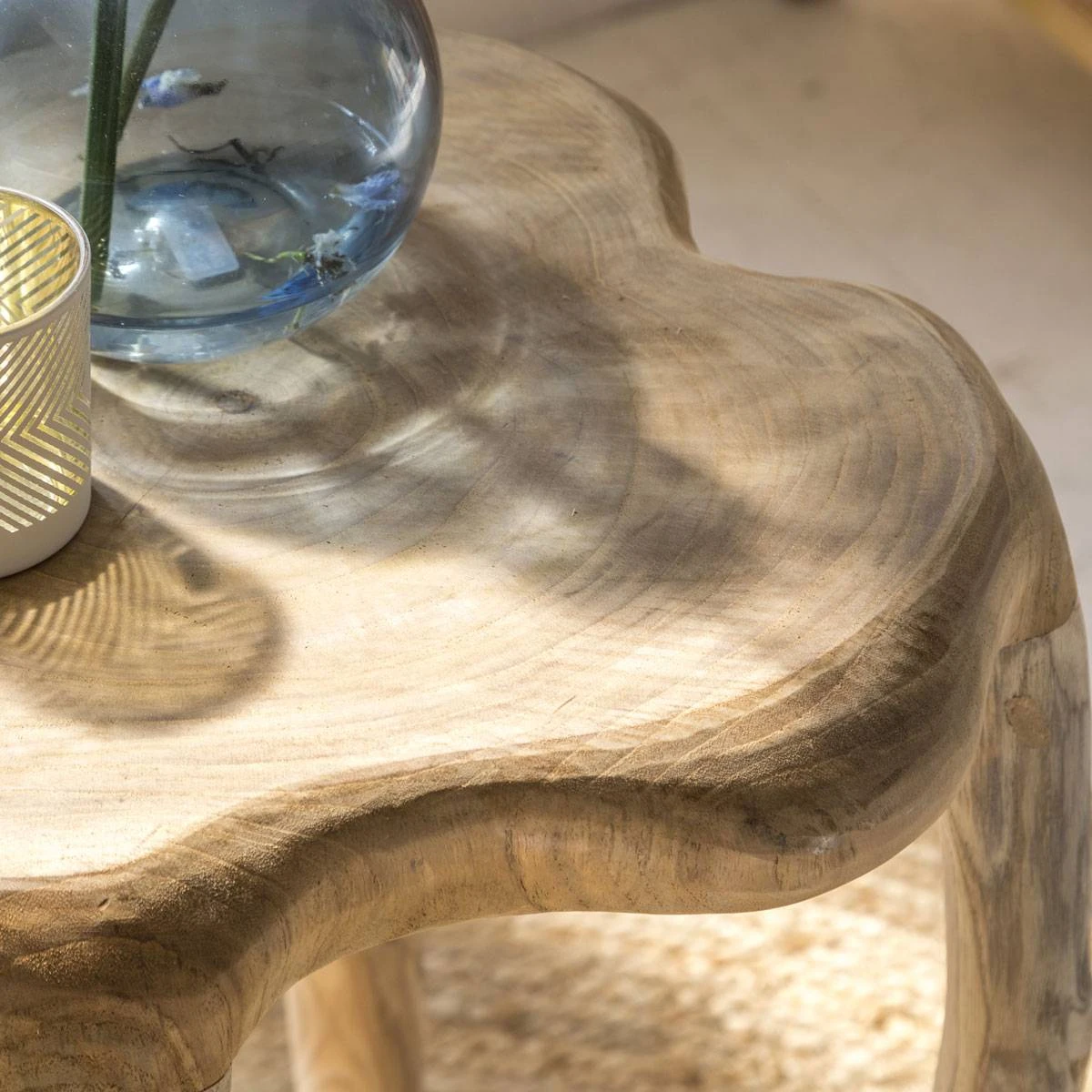 Véritable atout de décoration, cette table d’appoint est réalisée à partir d’un matériau de qualité à savoir le bois de teck. Particulièrement esthétique, il apporte une certaine robustesse au meuble. Il dispose de nuances chaleureuses qui amèneront une belle dose de convivialité dans votre pièce. Cette table d’appoint dispose d’un plateau style tronc et c’est cette caractéristique qui la rend si originale. En effet, d’un modèle à l’autre, les dimensions ainsi que la forme du plateau vont varier. Vous pourrez être certain de disposer d’un modèle unique !