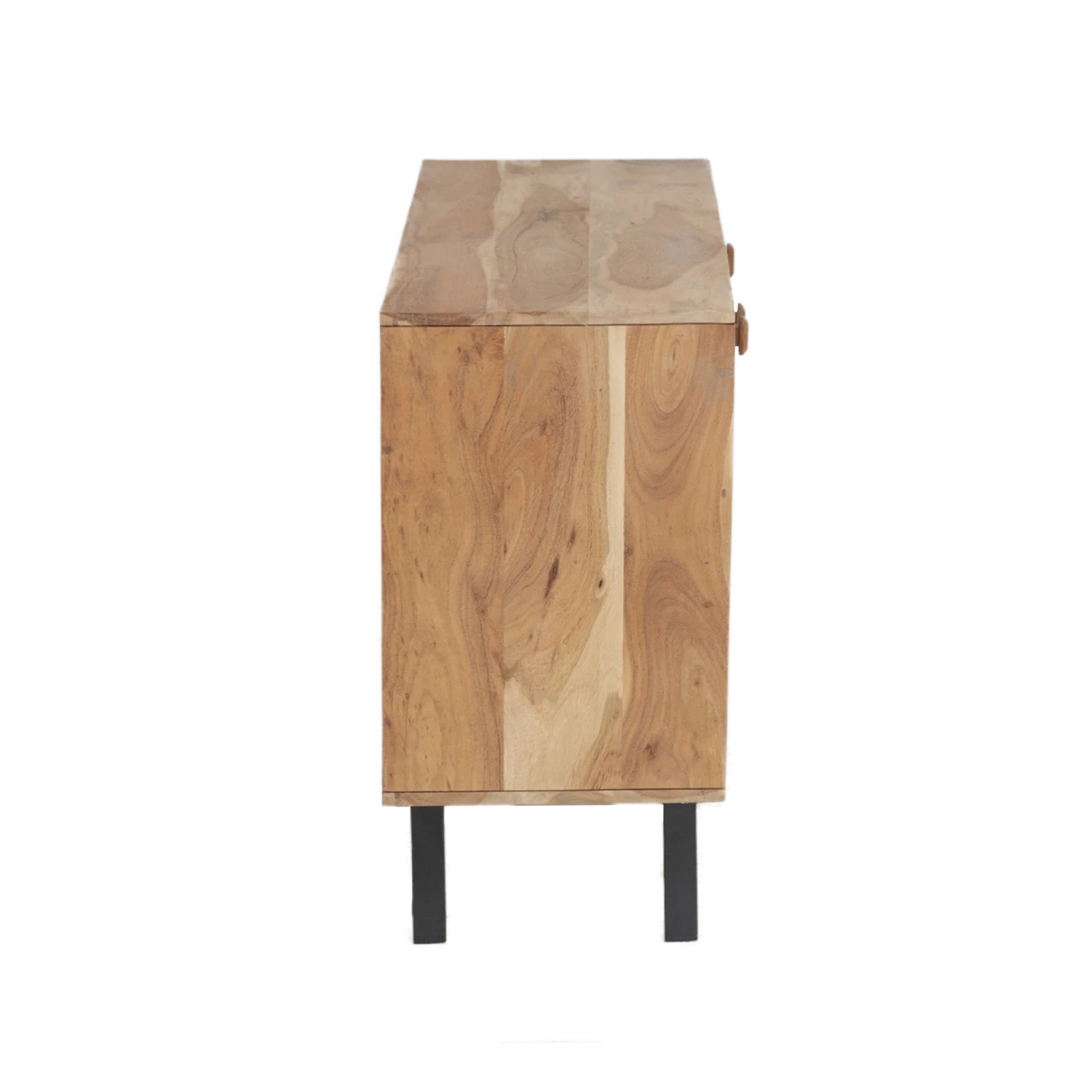 Ce buffet vous offre des espaces de rangements très appréciables. Derrière ses deux portes battantes sont cachées deux étagères qui vous permettront de ranger votre vaisselle, vos vêtements, ou vos bouquins sans difficulté, en fonction de la pièce qu’il occupera. Les 3 tiroirs sont également très pratiques !