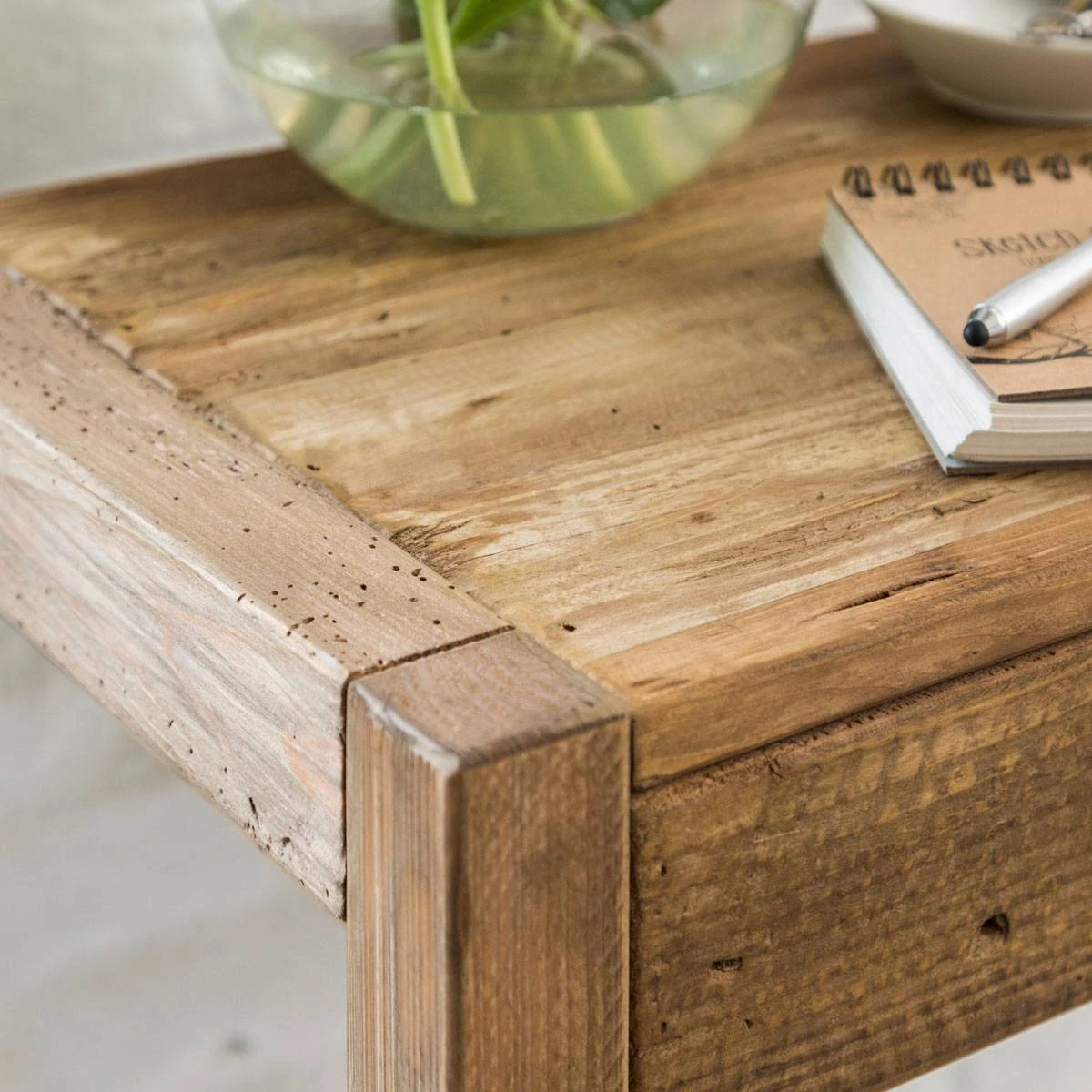 Ce bureau pin massif a été réalisé à partir de matériaux de qualité, à savoir le pin recyclé particulièrement reconnu pour sa robustesse