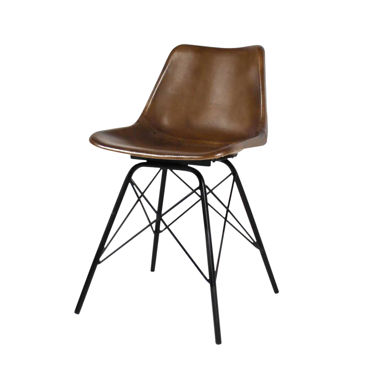 Son design est très séduisant avec ses lignes épurées, chics, et modernes. Quant à son piétement « Tour Eiffel », il est intemporel et résistant. Cette chaise industrielle est dotée d’une assise en cuir marron et d’un piétement très aérien en métal. On aime ses coutures et rivets apparents pour un look vintage / rétro.