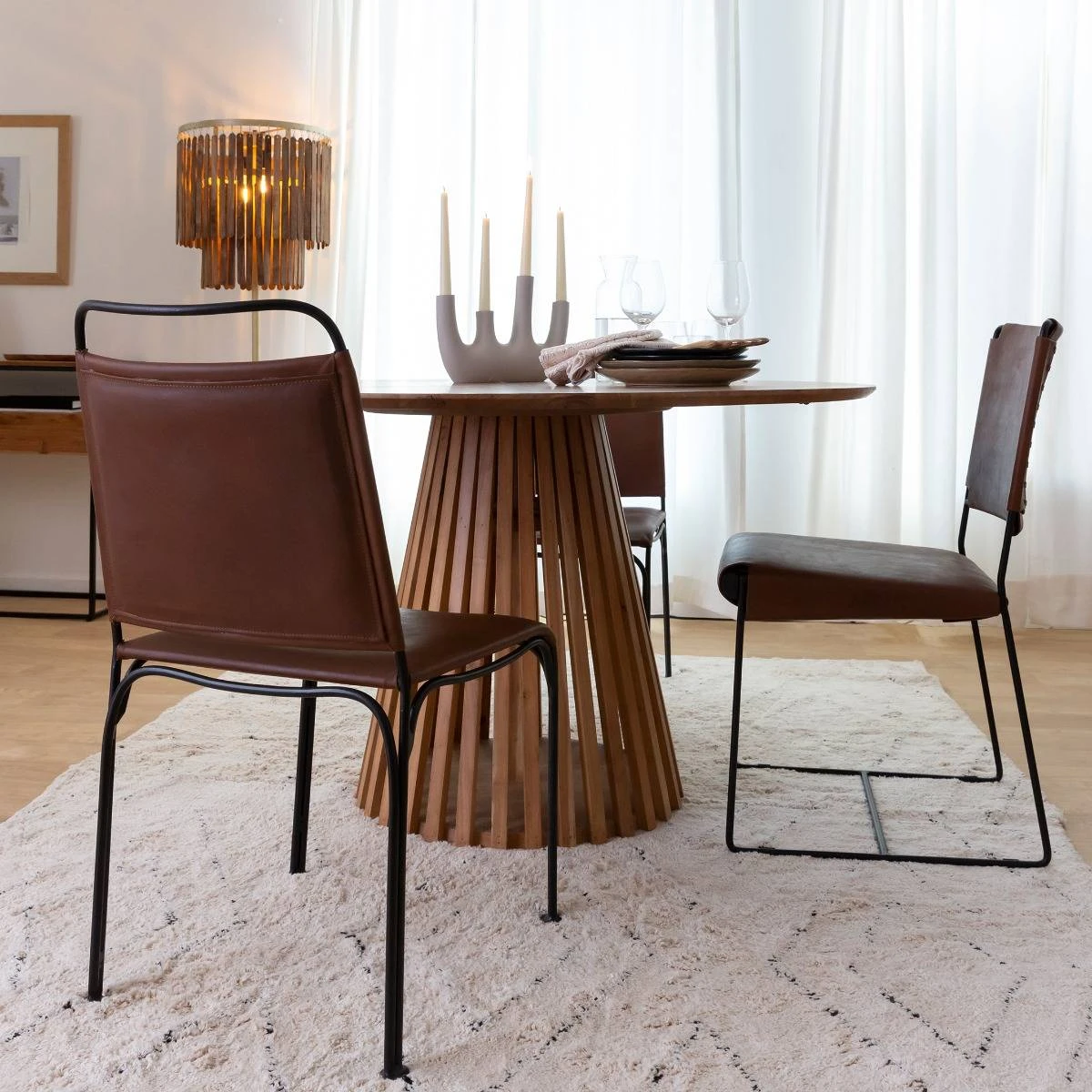 Voici la chaise Roma en cuir marron : un meuble étonnant qui allie un style industriel moderne à un grand confort. Fabriquée avec du cuir marron de première qualité et un cadre en métal noir, cette chaise est garantie d’être le point focal de n’importe quelle pièce. De son design élégant à ses matériaux de qualité supérieure, la chaise Roma est sûre de faire une impression pour les années à venir.
