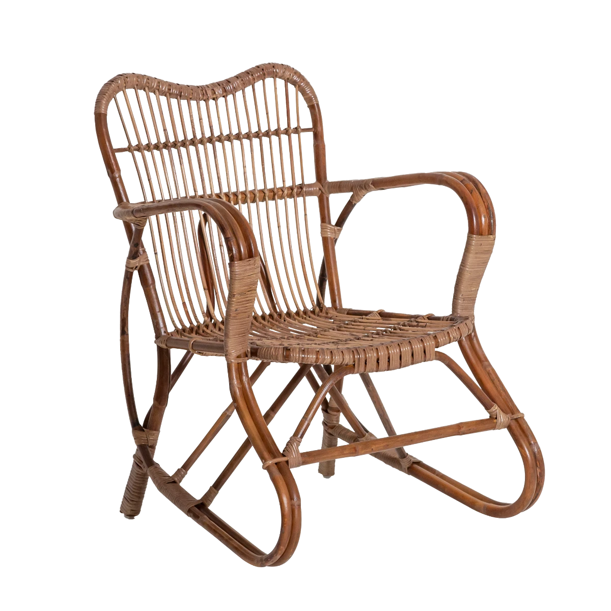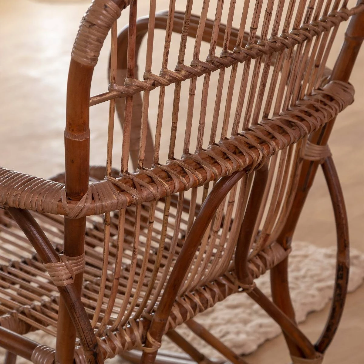 Fabriqué avec un magnifique rontin dans une riche teinte brune, ce fauteuil de qualité patrimoniale déborde de charme et de sophistication. Mesurant 84 cm de hauteur, 60 cm de largeur et 68 cm de profondeur, il est à la fois spacieux et confortable – parfait pour les soirées de détente à la maison comme pour recevoir des invités.