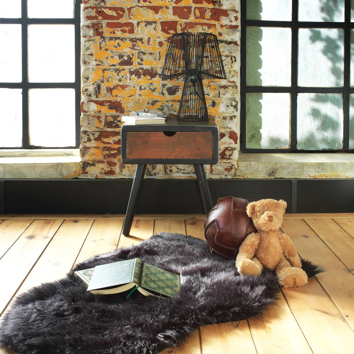 On l’aime pour son côté raffiné et décontracté ! Son principal atout ; sa douceur ! Il doit son originalité à sa fausse fourrure noire qui lui offre une allure douillée et très tendance. C’est une valeur sûre pour tous les fanas de décoration de la tendance cocooning ! N’hésitez pas à l’accessoiriser avec un joli fauteuil en rotin, une chaise épurée de style scandinave, un plaid tout doux, ou encore un bout de canapé style tronc d’arbre.
