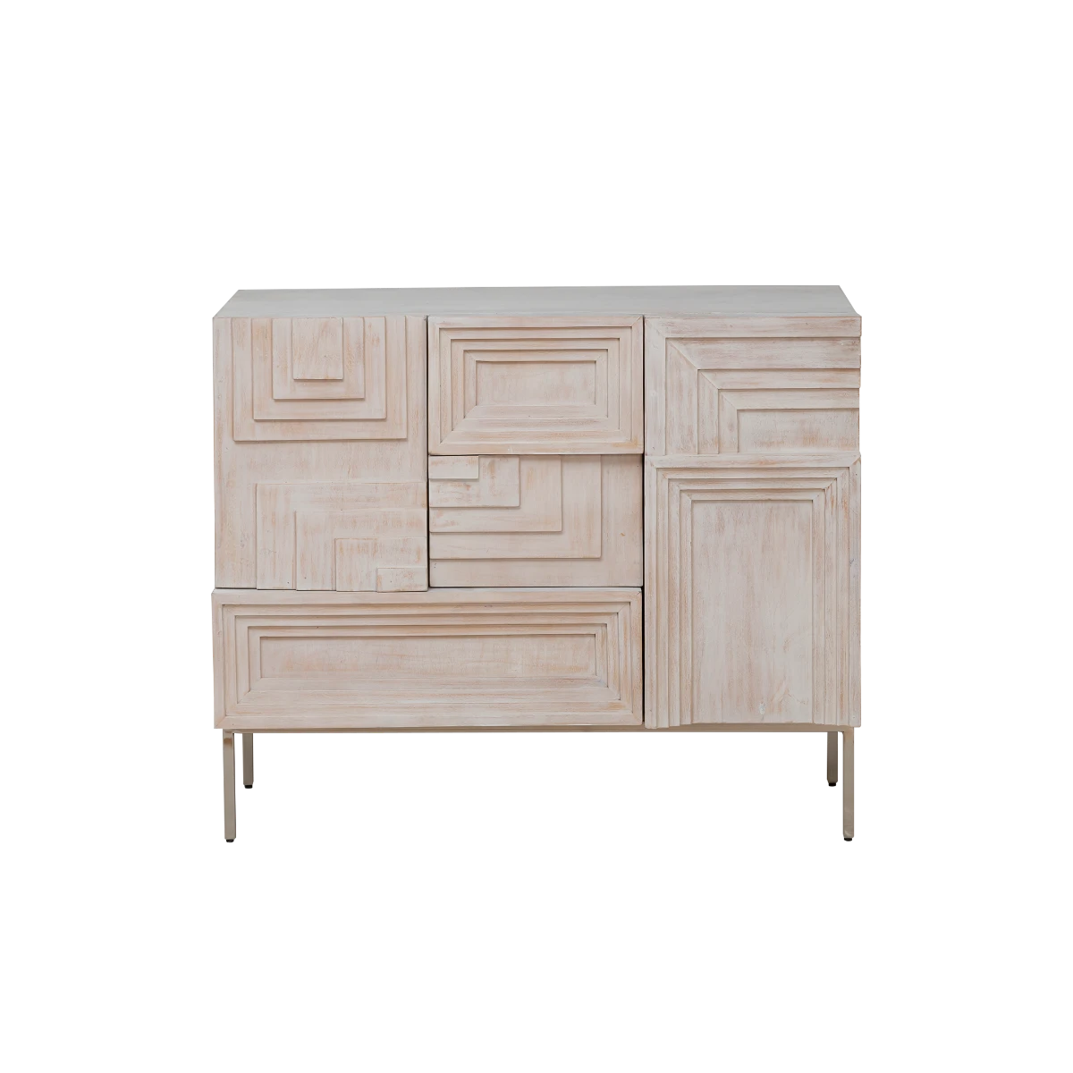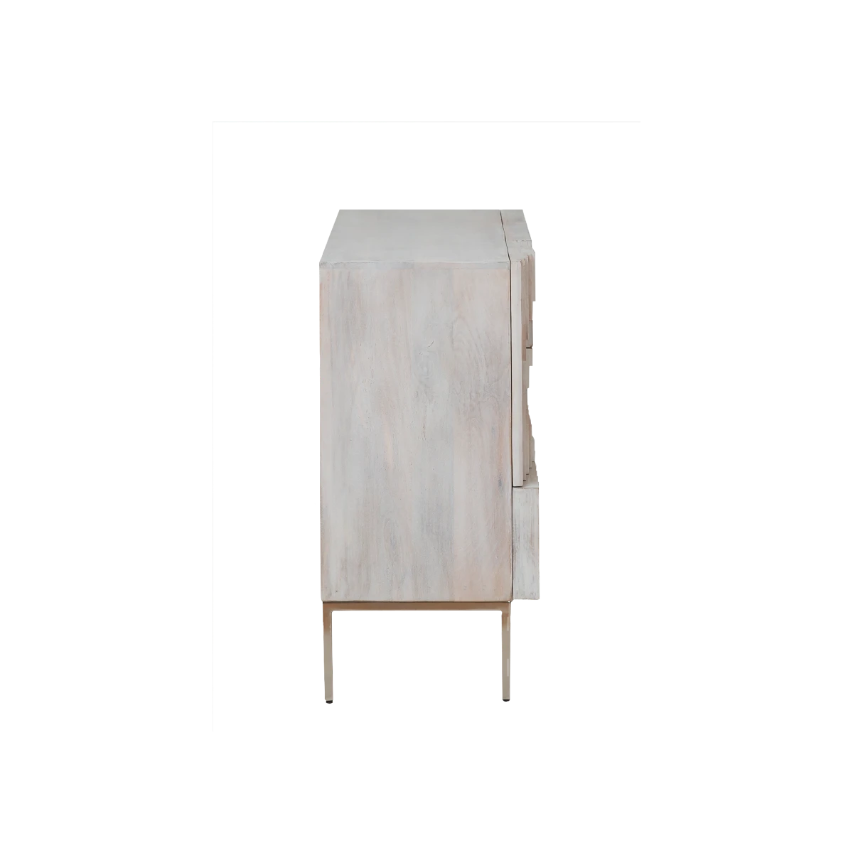 Voici le petit buffet Tristan, le complément idéal de votre maison. Fabriqué en bois de manguier, ce meuble à l’allure moderne et contemporaine qui s’adaptera à tous les décors. Ses pieds en métal doré ajoutent une touche luxueuse tout en restant subtils et élégants.