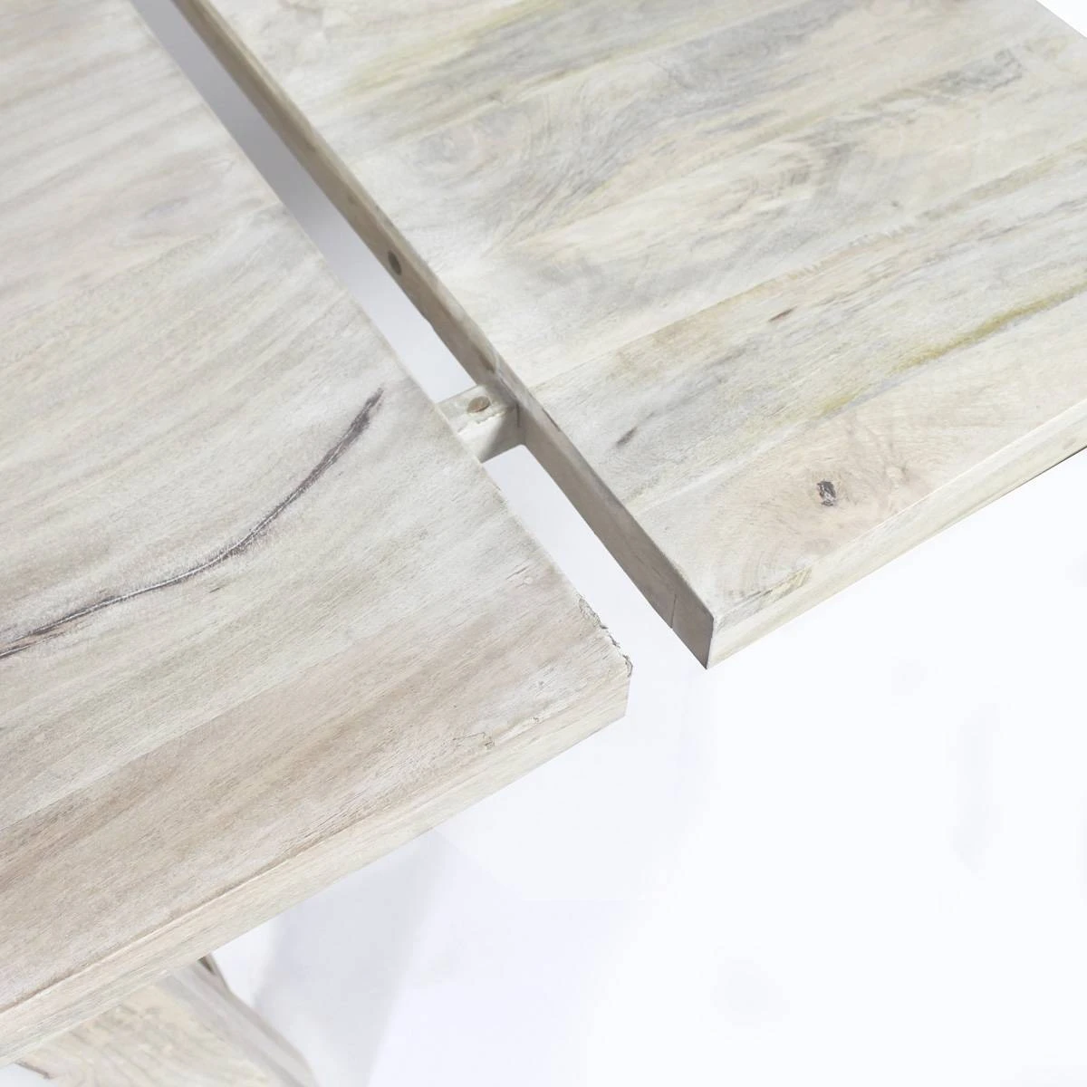 Réalisée entièrement en manguier blanchi, cette table est d’une qualité inégalable ! Optez pour des chaises industrielles, dépareillées ou encore scandinaves pour un style chic et tendance ! Sachez que le manguier est un bois qui ne nécessite pas d’entretien particulier et qui est très résistant.