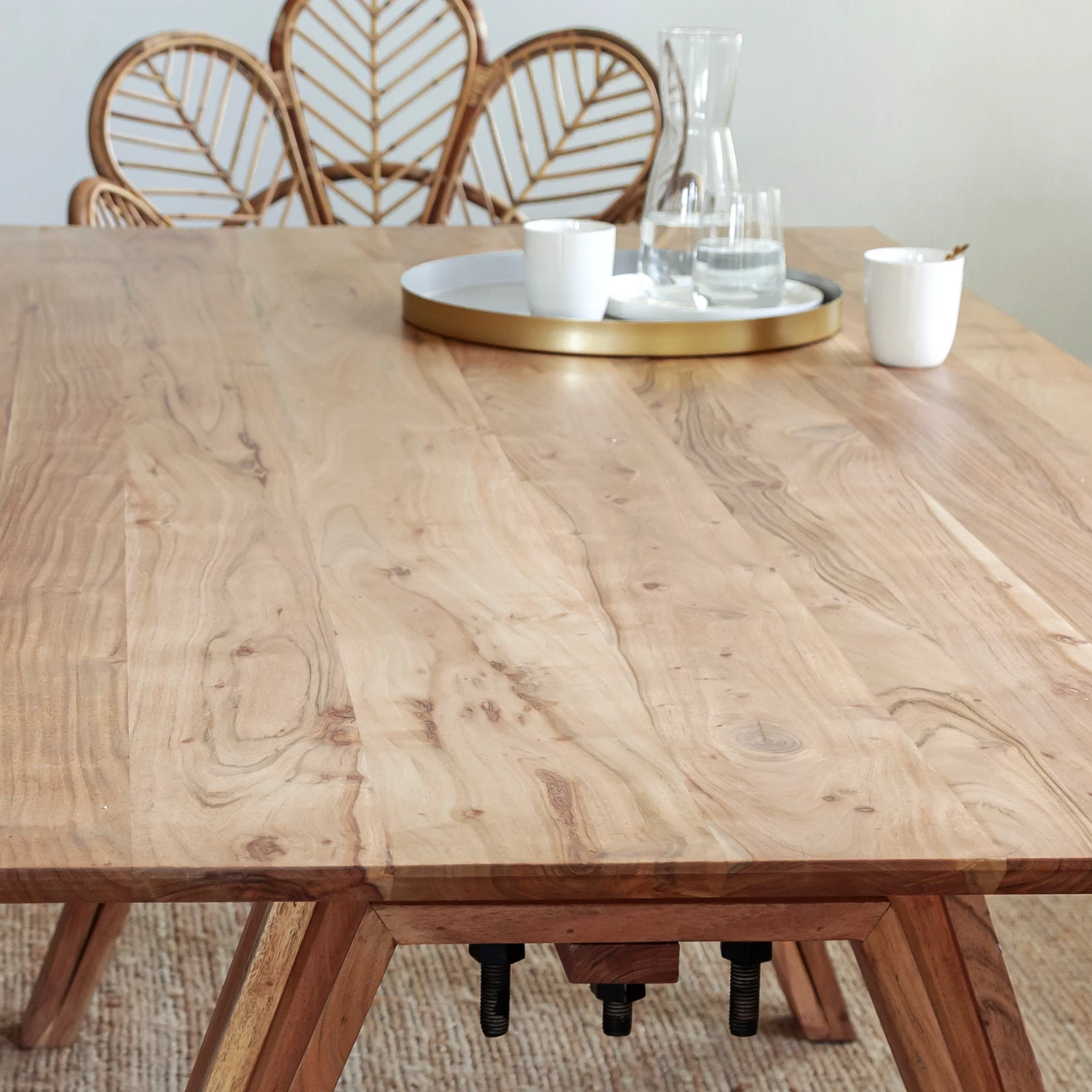 Cette table remplit pleinement sa fonction première à savoir proposer un meuble de qualité capable de réunir tous vos proches confortablement. Conçue en bois d’acacia, on aime son veinage et la durabilité que promet ce bois.