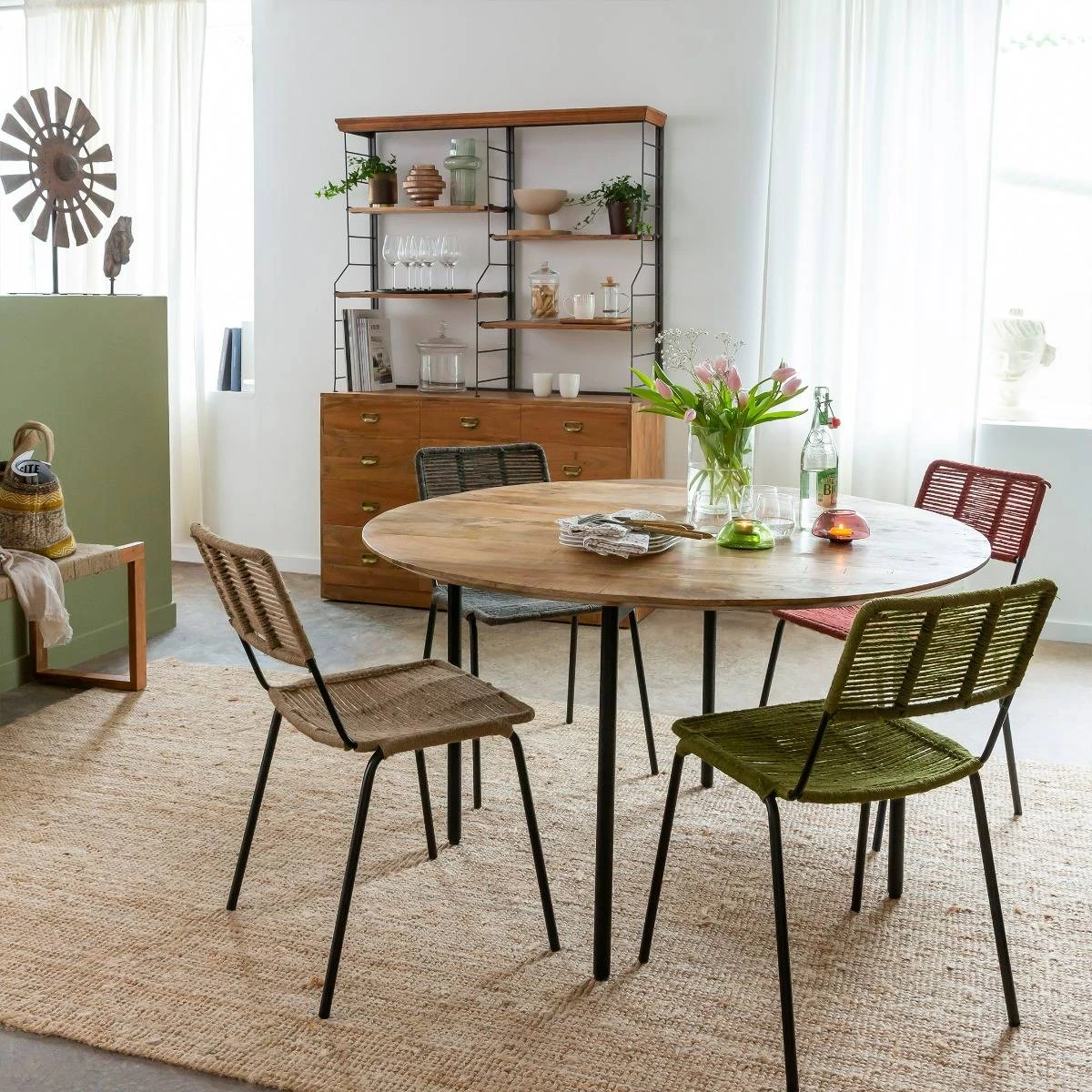 Complément idéal de toute maison, la table Gloria présente un style classique agrémenté d’une touche industrielle. La table ronde est fabriquée en bois de manguier ; elle est solide mais légère, ce qui vous permet de la déplacer pour l’adapter à n’importe quelle pièce. Ses pieds en métal noir ajoutent une touche de modernité et de style tout en étant durables et stables.