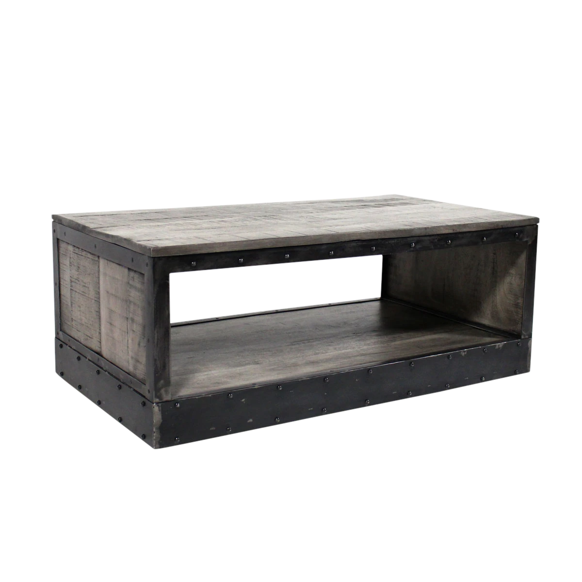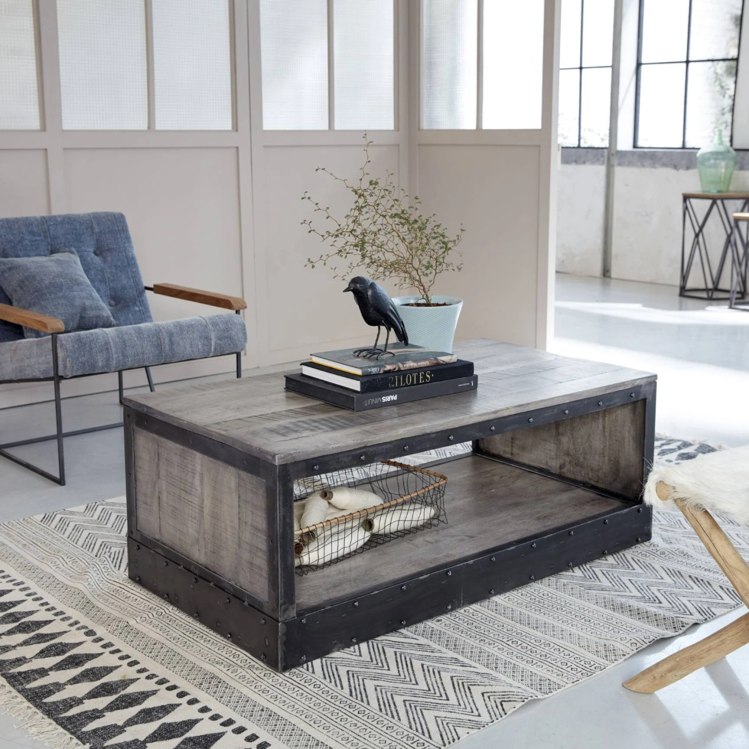 Avis aux adeptes de la tendance industrielle, cette table basse est faite pour vous ! Conçue en un seul bloc, elle allie à merveille bois, métal et patine grise. Ce coloris, très en vogue, amène une touche d’originalité et de modernité au meuble.