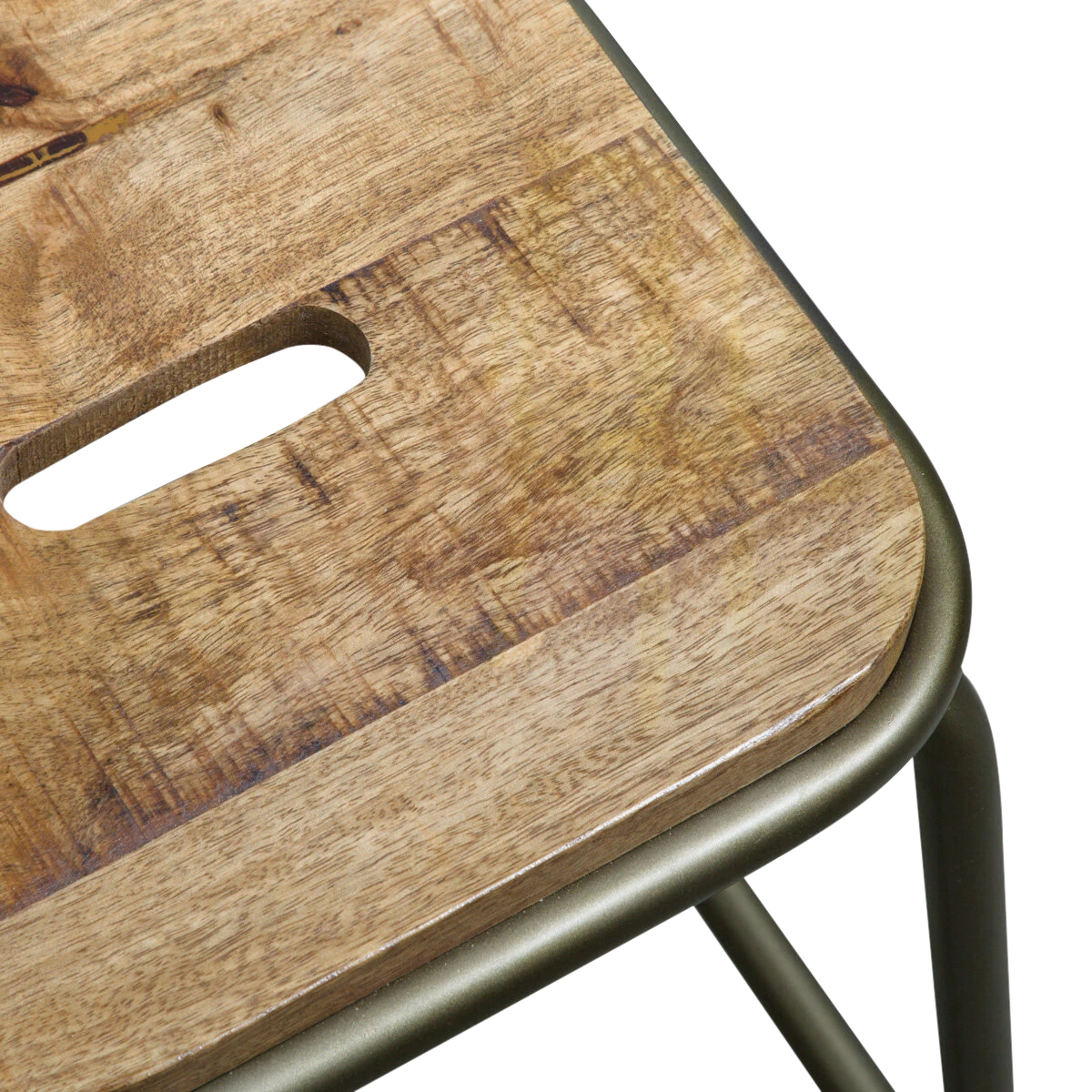 Ce tabouret de bar a été réalisé à partir de matériaux de qualité que sont le bois de manguier brossé pour l’assise et le métal gris / bronze pour le piétement. L’alliance entre son bois et son métal amène un design à la fois tendance mais aussi vintage. Raffiné et décontracté, il trouvera facilement sa place dans votre intérieur.