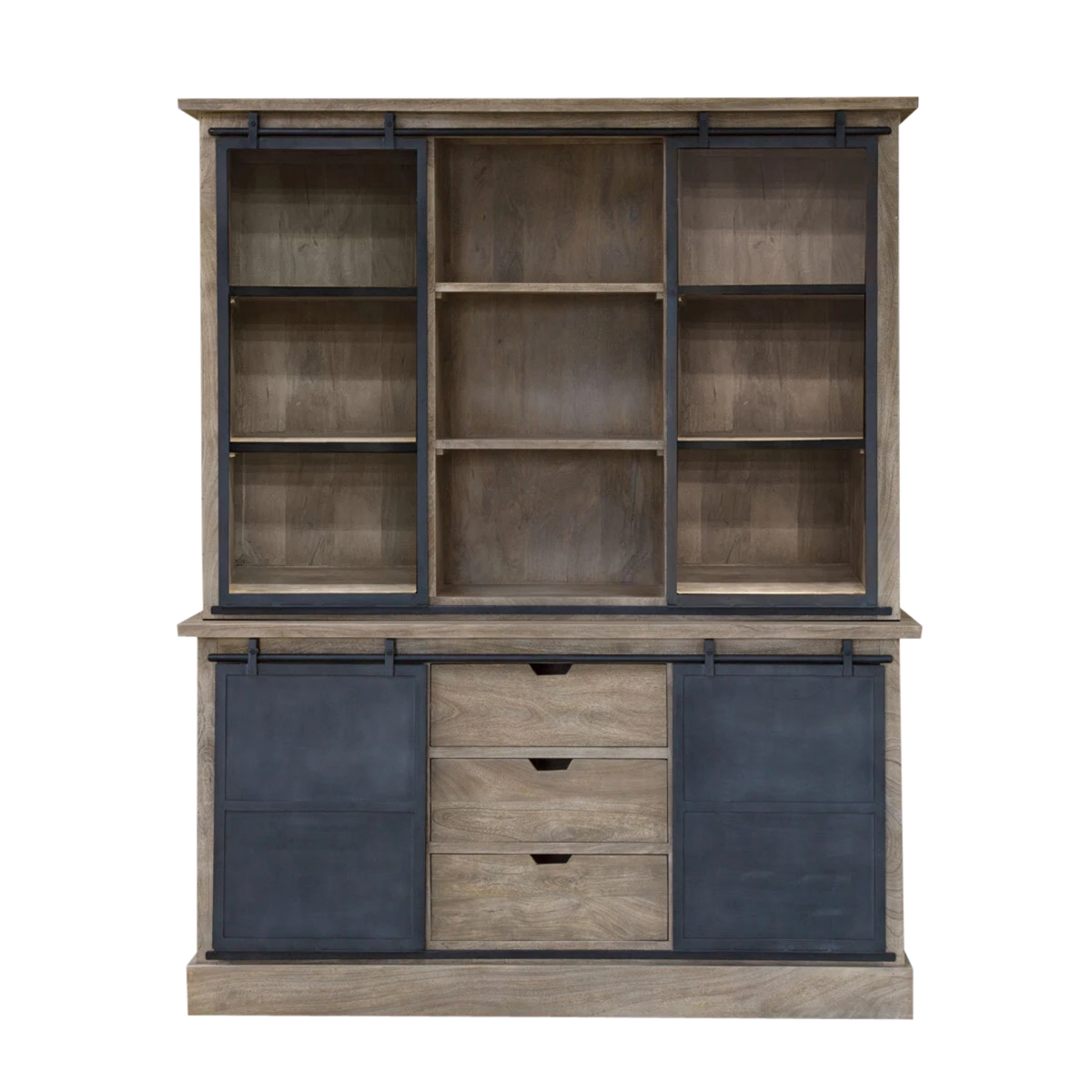 Ce buffet vaisselier industriel de grande qualité est l’alliance parfaite entre le métal gris foncé et le bois. A la fois véritable meuble de rangement et accessoire de décoration, il trouvera facilement sa place dans votre intérieur.